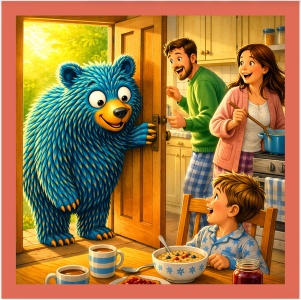 The Bear Who Came for Breakfast begins like any ordinary morning. Toast is on. Porridge is ready. Everything feels calm.